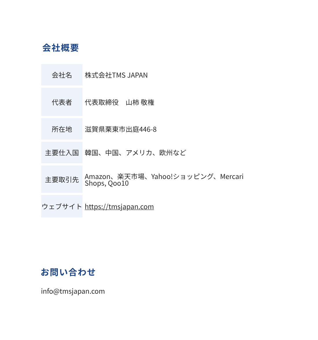 TMS JAPANは、海外の優れたブランドや製品を日本のお客様へ安心・確実にお届けすることを使命としています。